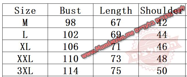בחירת מידה לפי הטבלה – לקחת 2 מידות מעל ישראל, לוודא