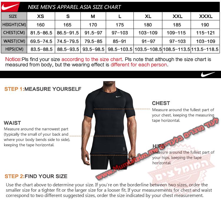 בחירת מידה לפי הטבלה – לקחת 2 מידות מעל ישראל, לוודא